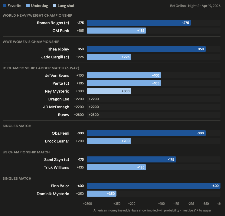 But the main event only scratches the surface of what Night 2 has in store. Jade Cargill puts the WWE Women’s Championship on the line against the returning Rhea Ripley in a clash of two of the most physically dominant women in WWE history — a collision that has been building since Ripley’s absence and Cargill’s rise to the top of the division. Meanwhile, Brock Lesnar makes his WrestleMania return against the rising powerhouse Oba Femi, a matchup that pits the most decorated monster in WWE history against the man who may be the future of the company. Sami Zayn defends the United States Championship against Trick Williams, Finn Bálor faces Dominik Mysterio in a Judgment Day grudge match that has been a long time coming, and the Intercontinental Championship is up for grabs in a six-man ladder match featuring Penta, Rey Mysterio, Je’Von Evans, Dragon Lee, JD McDonagh, and Rusev — a match that has instant Match of the Night written all over it.
